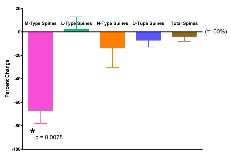 Appearance of dysmorphic dendritic spines in penumbra of an animal model of middle cerebral arterial occlusion (MCAO).